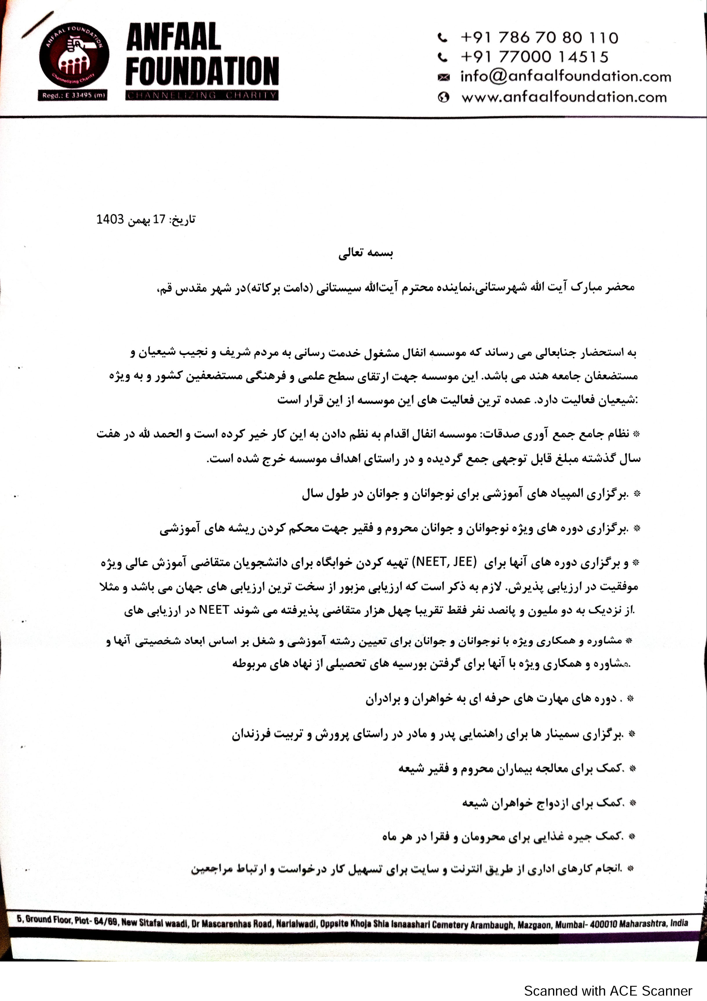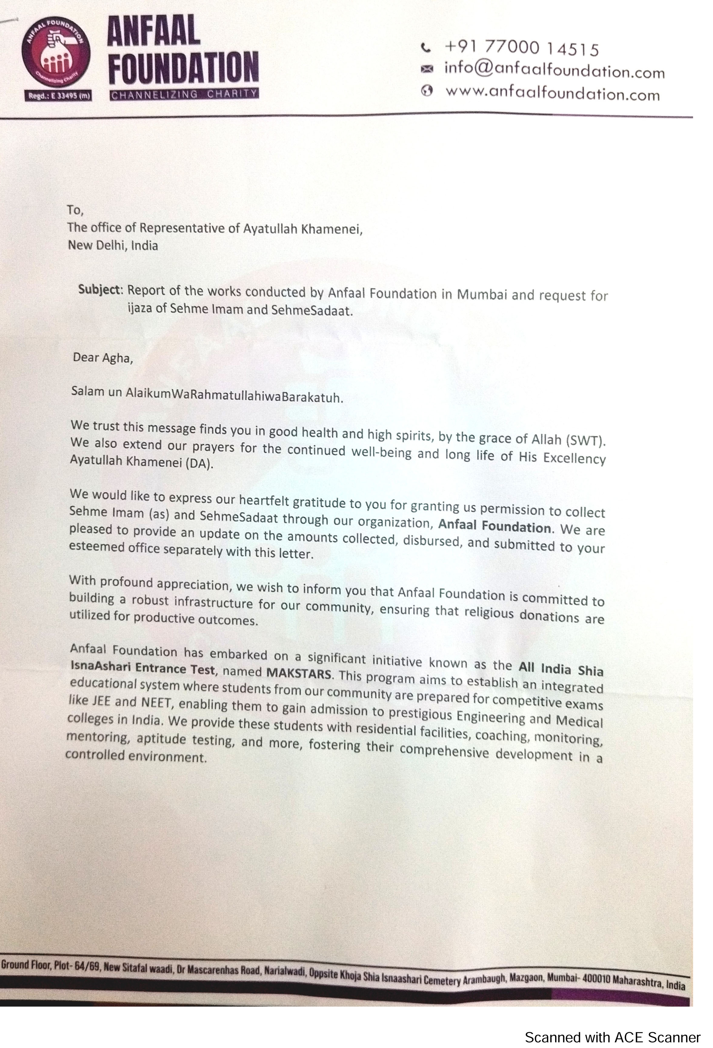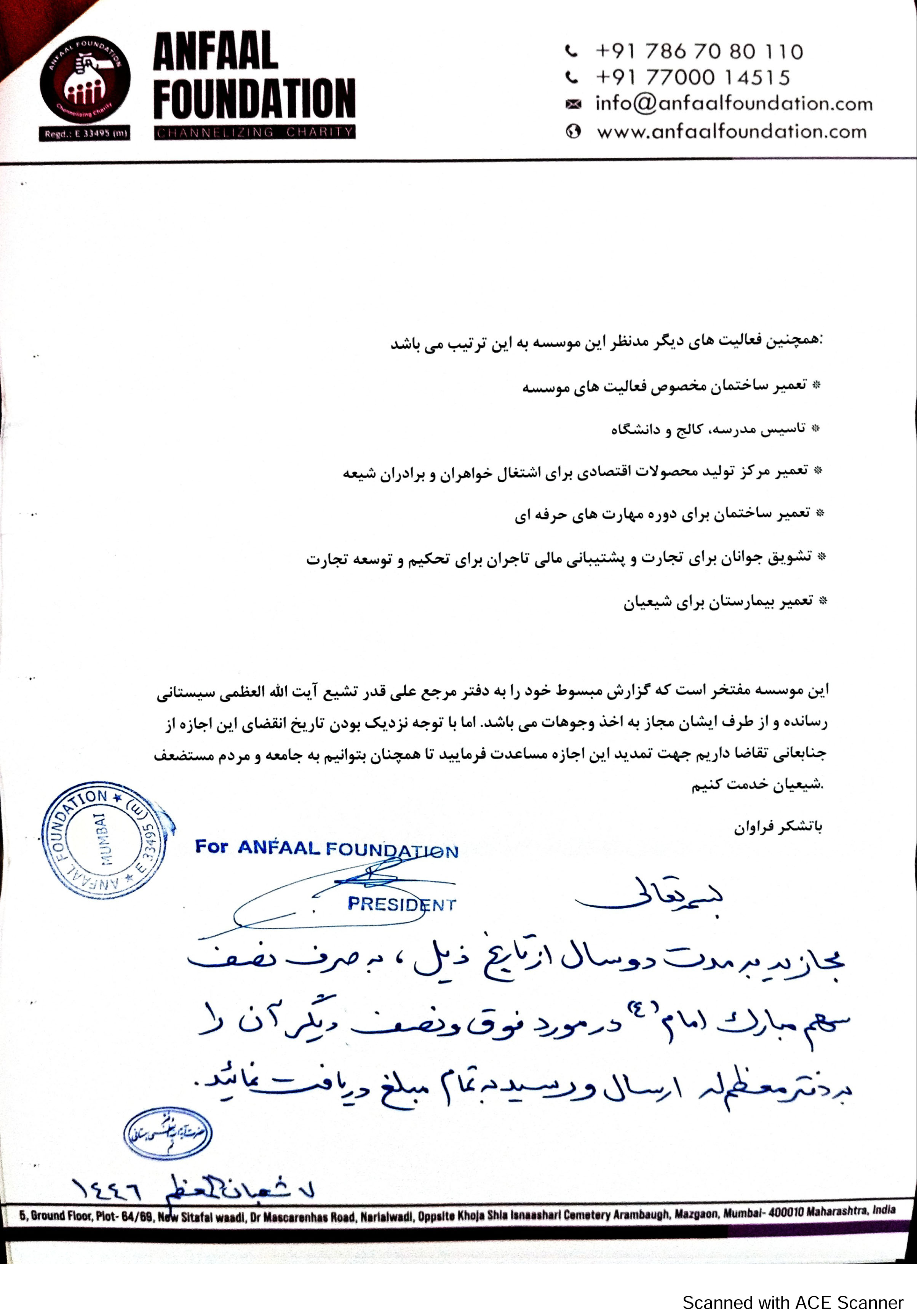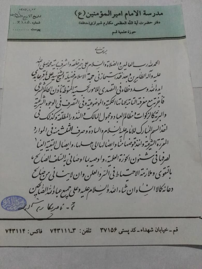 Copy of Ijaza from Ayatullah Makarim Shirazi