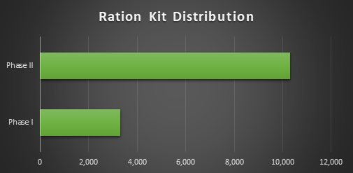 • In record time and with utmost discipline more than 4000 kits in Phase I and more than 10,300 kits Phase II were delivered to the identified families.