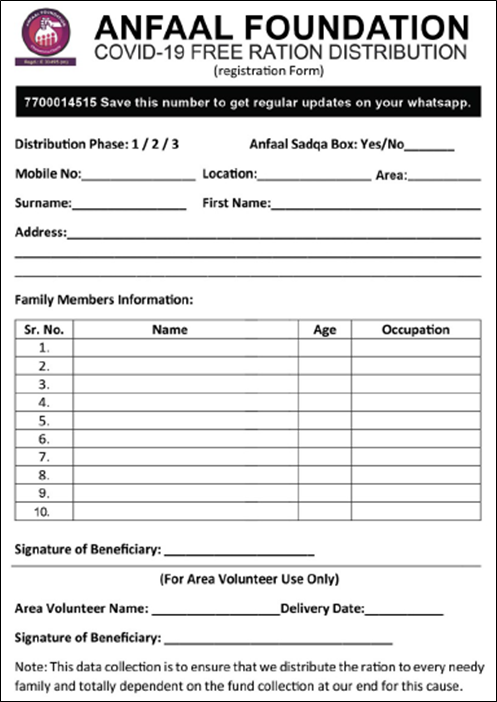 • A new ‘Ration Distribution Registration Form’ (new form) was devised to collect family member’s information which helped smoothen the distribution process.