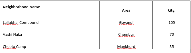 >> On the request of the office of The Commissioner of Police Mumbai, the ration kits were distributed to the following impacted areas:
